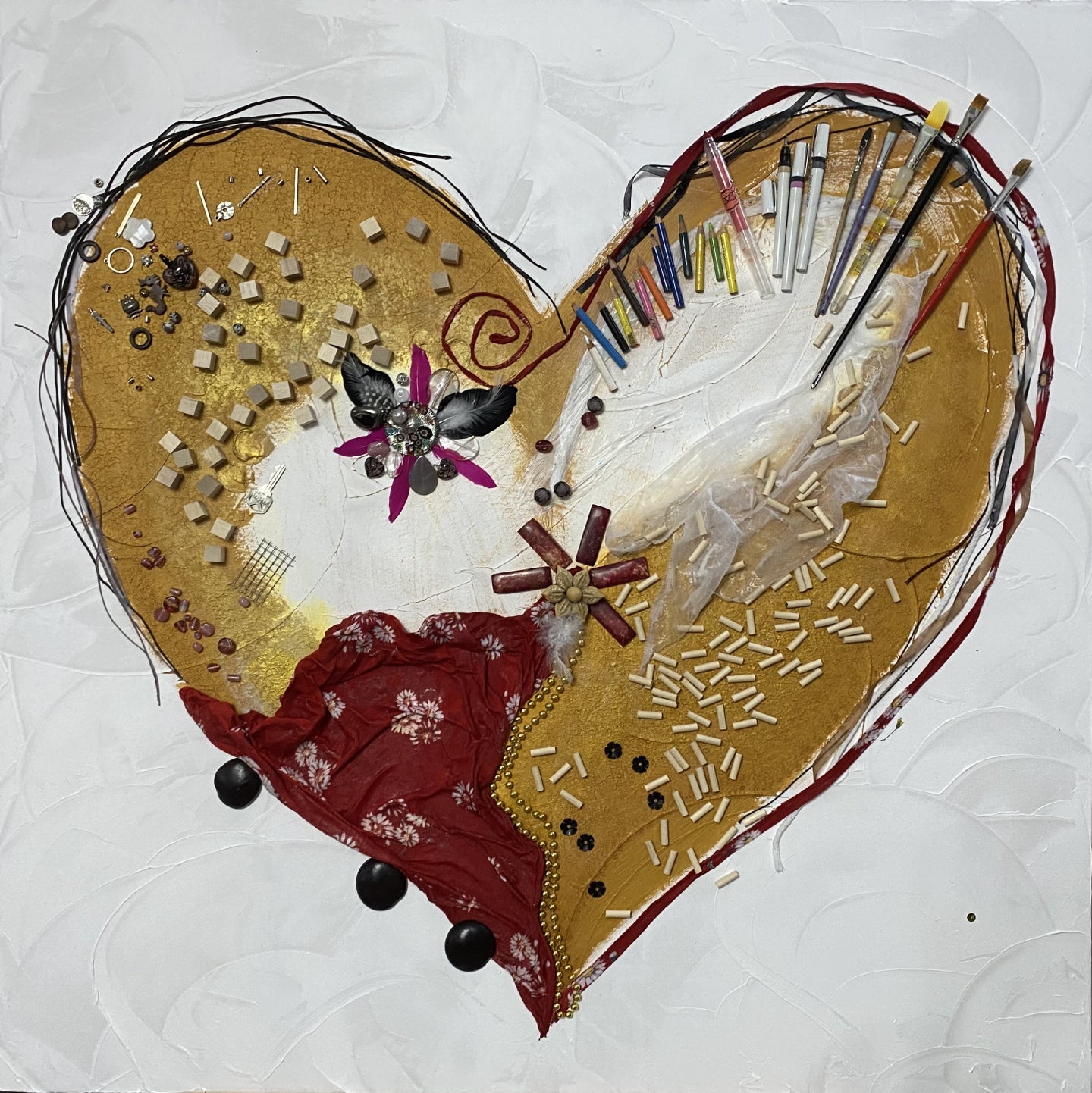 Objets signifiants et personnels assemblés pour former un cœur.